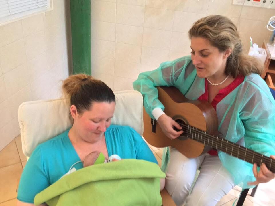 Hazay Tímea perintális zenei konzulens gitározik egy édesanyának.
